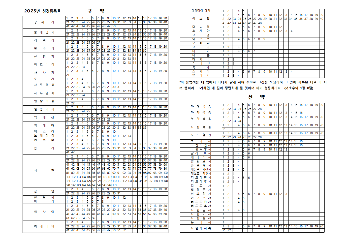 2025년 1년 1독 성경읽기표