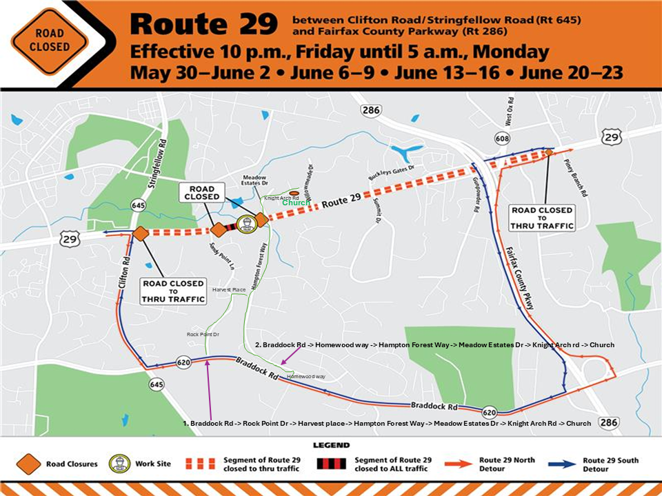 교회 진입 구간 Lee Highway(Reute 29)길이 폐쇠됩니다.