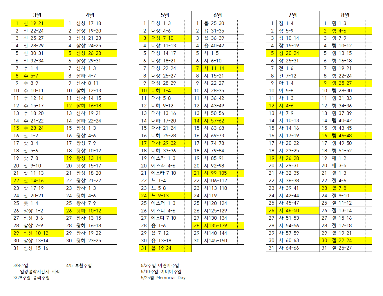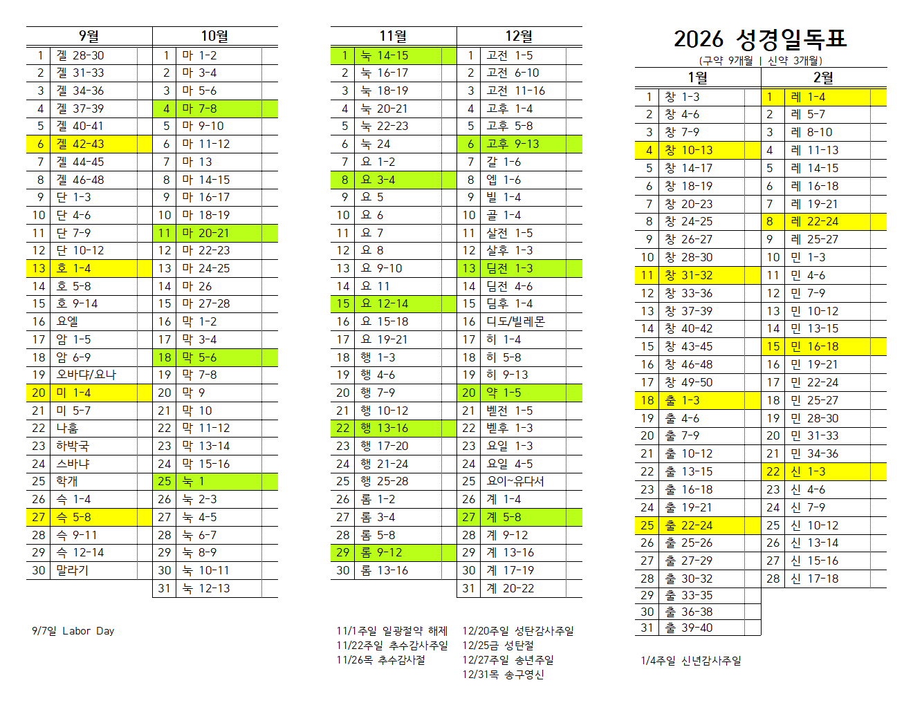 1년 1독 성경읽기 (개역개정)